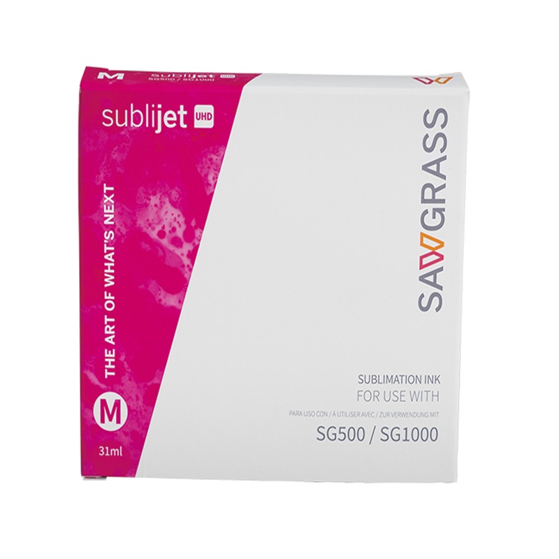 SubliJet-UHD is de sublimatie-inkt om haarscherp ontwerpen te printen met de Sawgrass sublimatieprinter Virtuoso SG500 en de SG1000. Deze magenta inktcartridge is geschikt voor het afdrukken van ontwerpen voor op verschillende materialen. Bijvoorbeeld aluminium, keramiek, polyester, kunststof en glas.