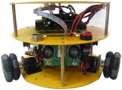 De 3WD 48-mm Omni Wheel Mobiele Robot Kit is een onconventionele mobiele robotkit, hij heeft 3 omni-wielen die hem in staat stellen tegelijkertijd te bewegen en te draaien en in elke richting tegelijk te accelereren zonder de richting te veranderen. Naast de 3 motoren voor het rijden heeft de robot 3 ultrasone sensoren om de omgeving te scannen. Om de mobiele robotkit te programmeren, is er voor Arduino gekozen om de software eenvoudig te kunnen onderhouden en de uitstekende motorbesturingsalgoritmen te gebruiken.