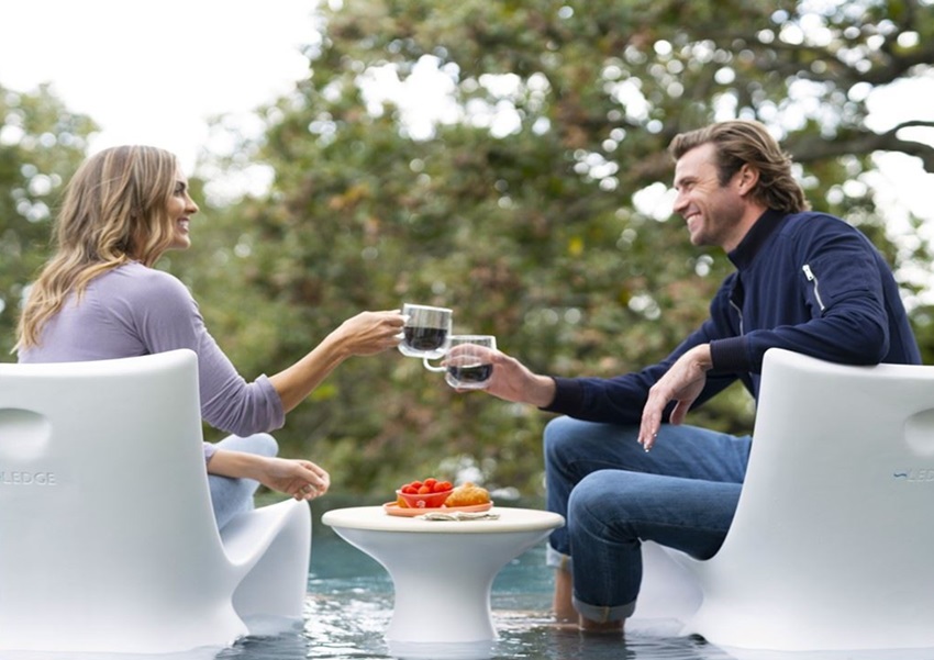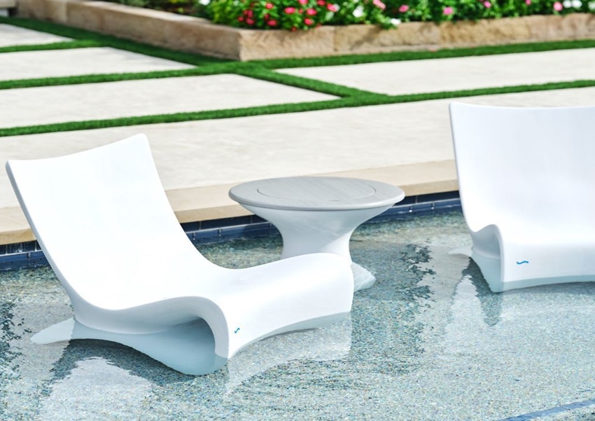 Met een nieuw architectonisch silhouet heeft dit luxe ligbed aan het zwembad of in het zwembad een verbeterde ergonomie en lendensteun waardoor u rechtop kunt zitten en meer betrokken kunt zijn bij uw omgeving en optimaal kunt genieten van uw buitenmomenten. Maak uw voeten nat op de rand zonder dat u een zwempak hoeft aan te trekken of ontspan op het dek met uw favoriete drankje in de buurt.