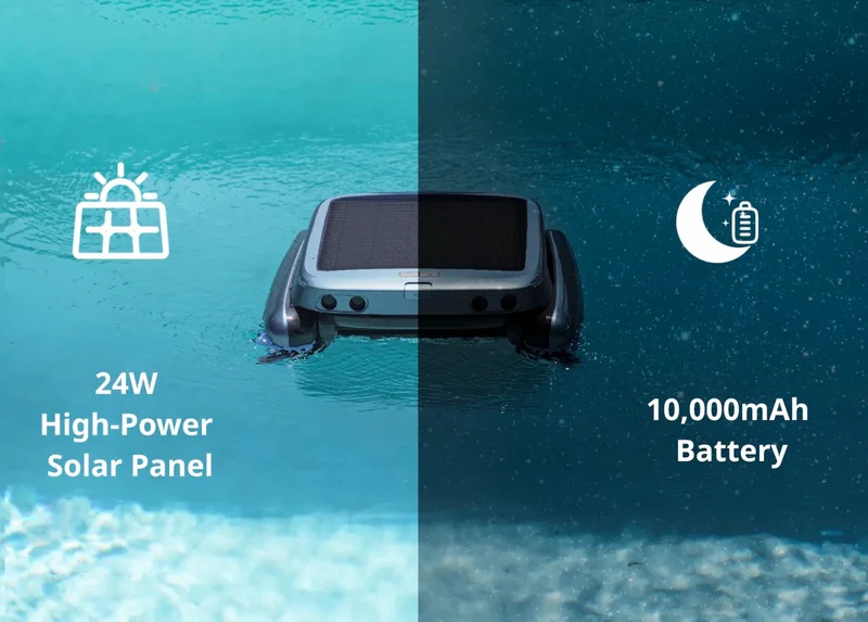 Het krachtige zonnepaneel met SolarTrack lichtenergietracking maximaliseert de efficiëntie in zonlicht. Wanneer het daglicht afneemt of het bewolkt is, wordt de batterij met hoge capaciteit ingeschakeld, wat zorgt voor ononderbroken reiniging.