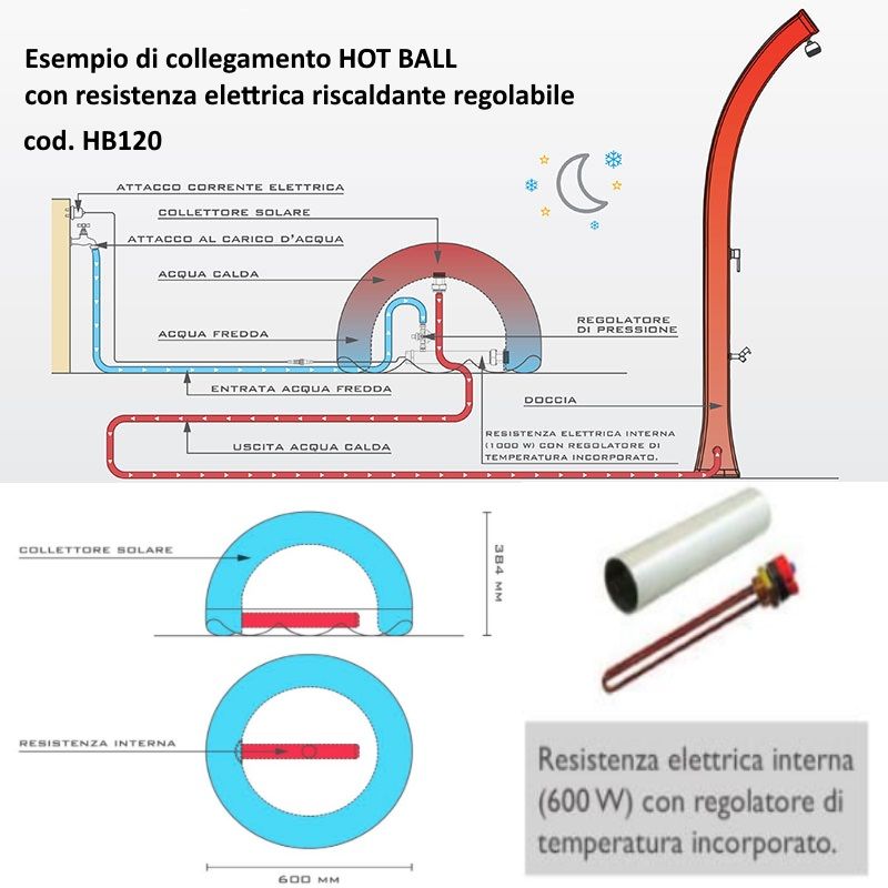 • De Hybrid Hot Ball is een eenvoudig te installeren en onderhoudsvriendelijk systeem, revolutionair, compact en efficiënt om het water van een traditionele tuindouche te verwarmen.