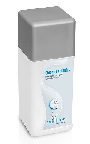• Wekelijks: 5 gram SpaTime chloorgranulaat per 1000 liter water.