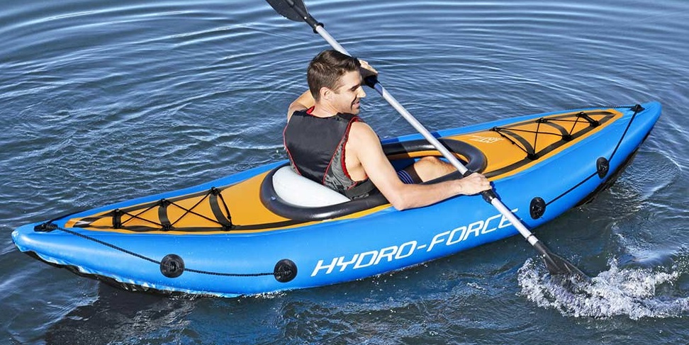De kajak heeft 3 luchtkamers en is uitgerust met een 1-persoonszitje. De afmetingen zijn 275 x 81 x 45 cm en hij kan een gewicht tot maximaal 100 kilo dragen. In de doos zit ook een peddel en een luchtpomp waarmee de kano zo is opgepompt. In het onwaarschijnlijke geval dat er een gaatje komt in het stevige materiaal, zit ook een reparatiesticker inbegrepen.