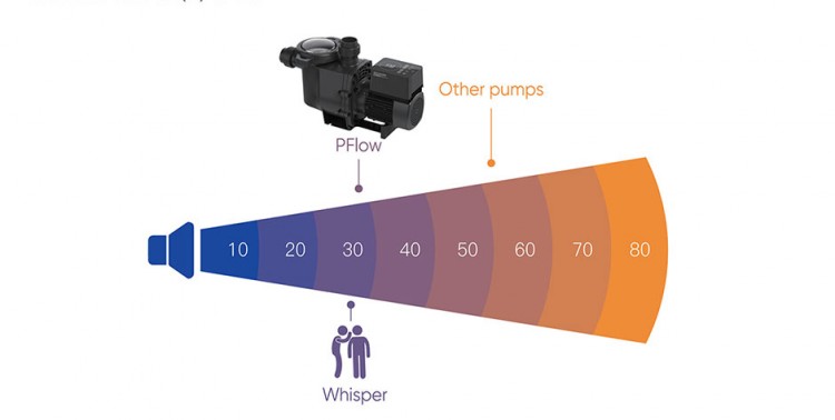 De EFlow inverter filterpomp is uitgerust met SilcenInverter technologie, waardoor hij 20 keer stiller is dan een conventionele filterpomp. Het is erg stil (tot 10 keer minder bB (A) dan de concurrentie). Op vol vermogen, op 1 m afstand, zendt hij tussen 38,9 en 52,5 dB (A) uit. Op vol vermogen zendt hij op 10 m afstand tussen 19,8 en 32,5 dB (A) uit.