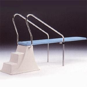 Deze via een opstap verhoogde duikplank van 2,50 meter in lengte - Model Elevado - is een goed uitziende accessoire voor uw zwembad en geeft het juiste plezier voor jong en oud. Voorzien van een ivoorkleurige trap van polyester met antislip oppervlak en 2 RVS handvaten voor meer veiligheid. Deze duikplank is vervaardigd uit polyester en glasvezel voor een lange levensduur en heeft een maximaal draagvermogen van 120kg en wordt compleet geleverd inclusief bijbehorend bevestigingsmateriaal.
