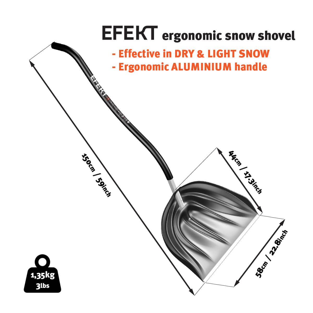 Deze ergonomische sneeuwschep - Efekt PRO e58 is een zeer wendbare en duurzame sneeuwschep. Het maakt het mogelijk om sneller, efficiënter en vooral veiliger door zijn ergonomische ontwerp sneeuw te verwijderen.