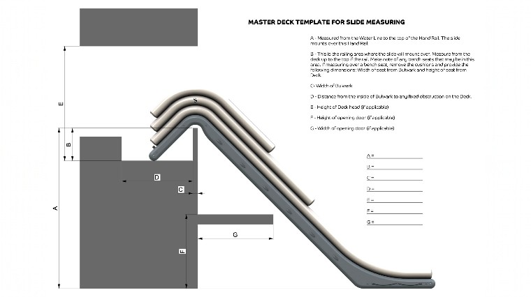 Als u een idee wilt krijgen van de kosten van een glijbaan voor uw jacht, meet dan de hoogte van de reling tot de waterlijn. Dit geeft u een indicatie van de benodigde glijbaanmaat. Houd er echter rekening mee dat er andere factoren van invloed zijn, zoals eventuele obstakels op het dek.