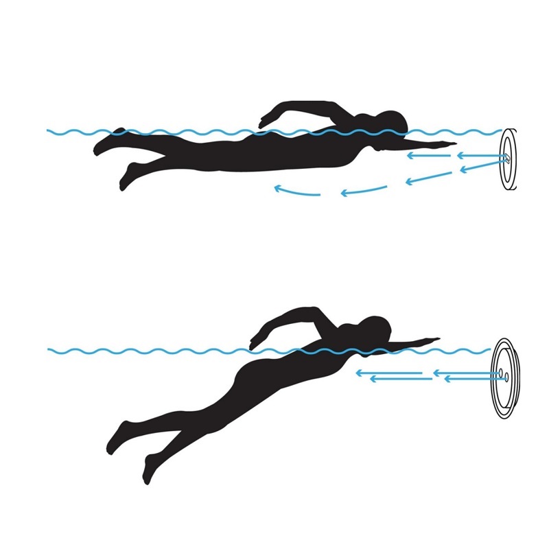 Alle elementen voor het instellen en inschakelen van de tegenstroom bevinden zich in het ovale voormasker. Aan de onderkant zit een pneumatische knop die de tegenstroom aan en uit zet. Wanneer ingeschakeld, wordt het water door de gaten aan de zijkant aangezogen en teruggevoerd door het bovenste mondstuk, dat kan worden gekanteld om de waterstroom te richten. Het mondstuk bestaat uit 2 roterende delen. Wanneer het binnenste deel wordt gedraaid, wordt de waterstroom geregeld en wanneer het buitenste deel wordt gedraaid, wordt de hoeveelheid luchtinlaat geregeld.