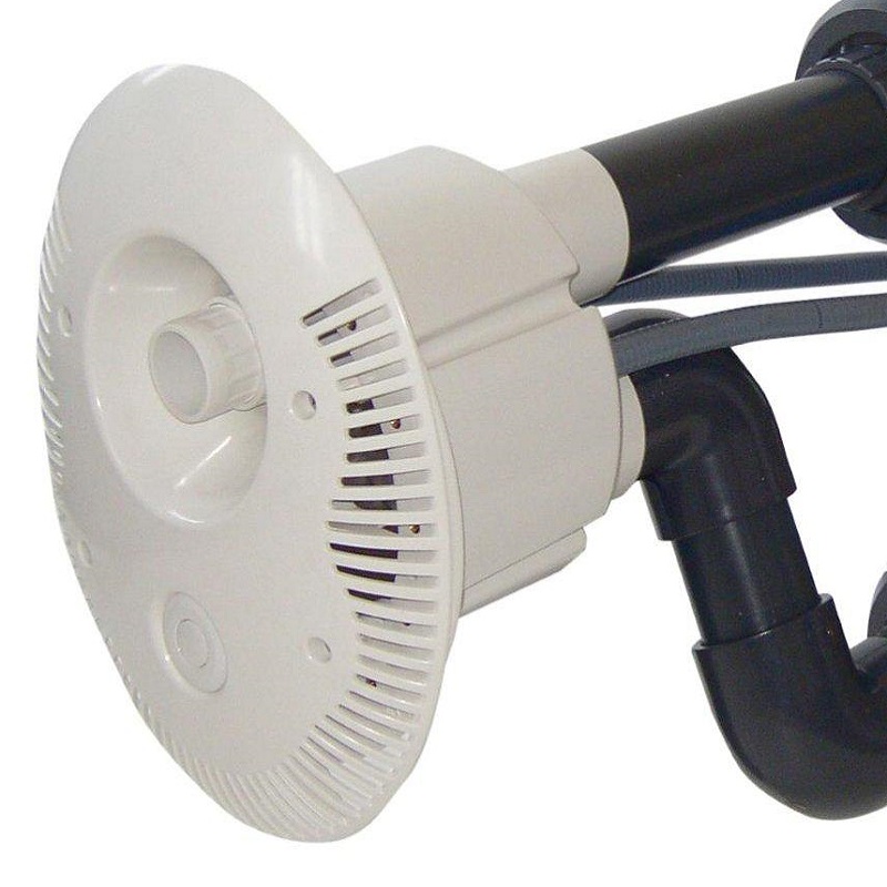 Het grootste deel van de V-Jet tegenstroom is een enorme pomp met een hoog vermogen. Het water wordt in de pomp gezogen via de pijp in het onderste deel, vanwaar het via de bovenste pijp door het mondstuk aan de kop van de tegenstroom terug in het zwembad wordt geduwd.
