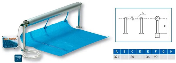 Het oprolsysteem is geschikt voor afdekkingen van 6,40 - 8,60 meter breedte en 15 meter in lengte. Bij een ovaal zwembad kan de lier in het midden van het zwembad worden geplaatst en kan de zwembadafdekking in beide richtingen tegelijk worden uitgerold. De lier heeft geen opbouw- en montage voorbereiding nodig.