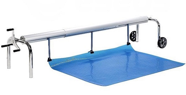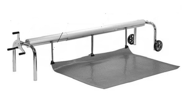 Dit rolgordijn is verrijdbaar 2WD — aan een zijde U-vormige steunen op wielen. De telescopische stang is in lengte verstelbaar, geschikt voor elk zwembad met een breedte van 6,4 tot 8,6 meter. Het stuurwiel kan aan elke kant van de jaloezie worden geïnstalleerd.