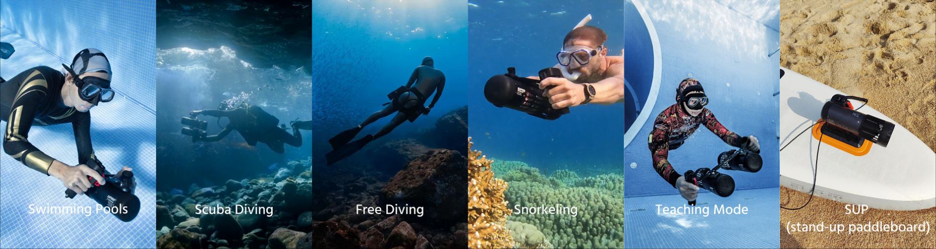 Mix en match onderdelen en accessoires voor verschillende toepassingen, zoals draagbaar, bevestiging aan een duikfles en gemotoriseerd paddleboard. Het heeft nog steeds onbeperkte mogelijkheden die wachten op ontgrendelde add-ons en extensies