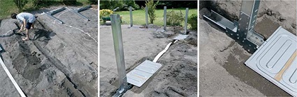 Deze methode houdt in dat de zwembadconstructie wordt vastgezet door middel van een reeks metalen balken die zo onder de grond worden geplaatst dat ze voor niemand zichtbaar zijn. De balken vereisen een betonplaat met een minimale dikte van 17 cm om te worden ingebed.