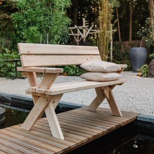 Douglas picknicktafels van geschaafde schaaldelen voor een authentieke uitstraling.