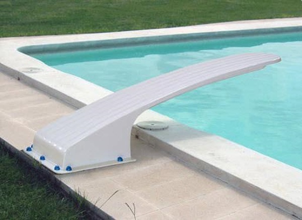 Brede flexibele lange duikplank, gemaakt van polyesterhars en glasvezel. Onaangetast door UV-stralen en weersinvloeden.
