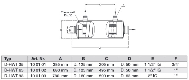 • Verwarming: uit een ketel, een warmtepomp, van zonnecollectoren of soortgelijke Type: D-HWT 35