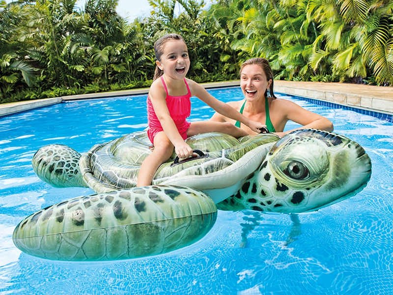 • Heeft u thuis een zwembad maar heeft u nog steeds een tekort aan opblaasbaar speelgoed? Of bent u op zoek naar een zwemmaatje op uw vakantie aan zee? Je kunt genieten van veel plezier in het water met deze Intex Opblaasbare Schildpad, die er net zo uitziet als het echte werk. Deze mooie opblaasbare schildpad, gemaakt van hoogwaardig UV-bestendig vinyl, zal zeker vreugde brengen aan kinderen van alle leeftijden. Het beschikt over twee stevige handgrepen voor meer stabiliteit op de schildpad. Geniet van uren en uren zomerplezier met deze opblaasbare schildpad.