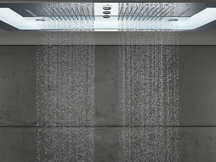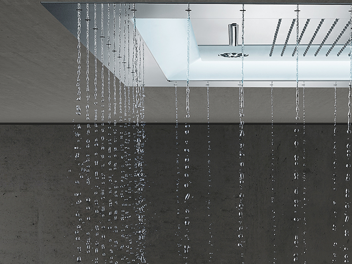 Dit is de Rain Spray. Sluit je ogen. Een zachte zomerregen valt neer als zachte druppels. Voel je het? Het maakt je hoofd net zo goed leeg als dat het je lichaam reinigt en creëert een moment om na te denken.