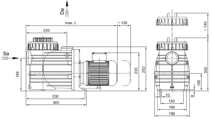 Het water in het voorfilter dient als koeling voor de pomp, daarnaast wordt het aanbevolen om de zwembadpomp niet hoger dan 1 m boven het waterniveau te monteren.