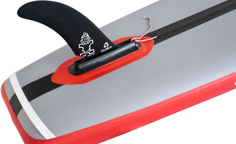 Een enkele verwijderbare centrale vin die een uitstekende handling garandeert. Rechtlijnig of manoeuvreren? Het is jouw keuze! Er is ook een bredere staart die draaien en stabiliteit gemakkelijker maakt. Er is ook een "railrand" aan de staart om de waterstroom te bevorderen, wat het glijden verbetert.