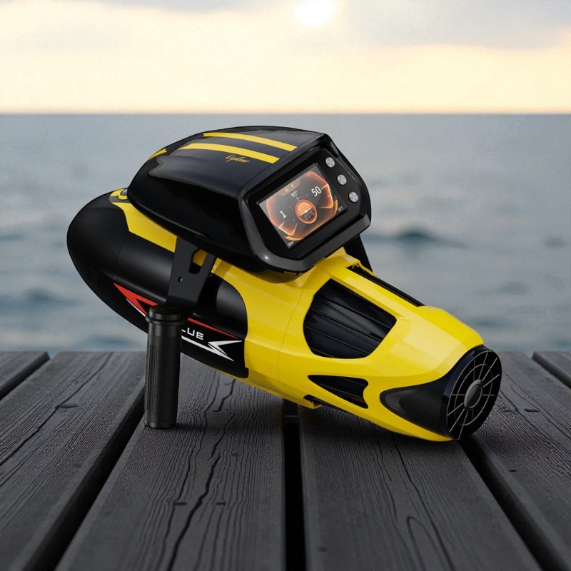 In het midden van de Vapor-scooter bevindt zich een krachtige turbine motor die je met opwindende snelheden tot 10 kilometer per uur door de diepten van de oceaan voortstuwt. Dankzij deze ongelooflijke stuwkracht kun je moeiteloos door zelfs de meest uitdagende onderwateromgevingen bewegen, waardoor een geheel nieuw rijk aan verkenningsmogelijkheden wordt geopend.