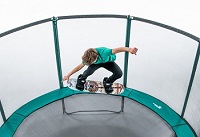 Met deze trampoline in familiestijl kun je sprongen en eenvoudige figuren uitvoeren. De robuuste springmat is slap- en UV-bestendig.