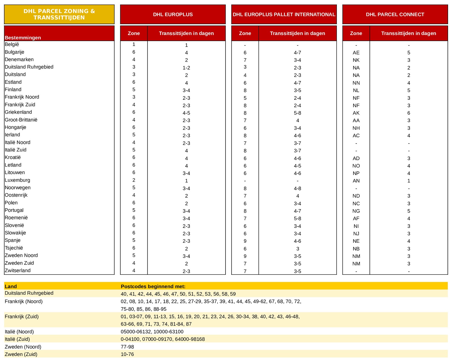 Levertijd voor Nederland naar België of Luxemburg is 1 werkdag