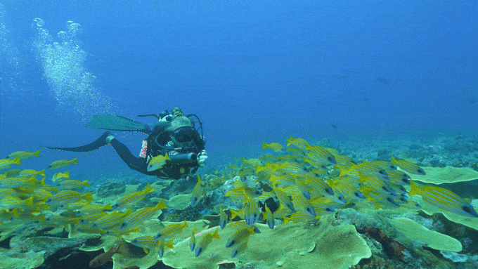 DE AQUATISCHE WERELD ONTDEKKEN DOOR ONDER WATER TE VLIEGEN.