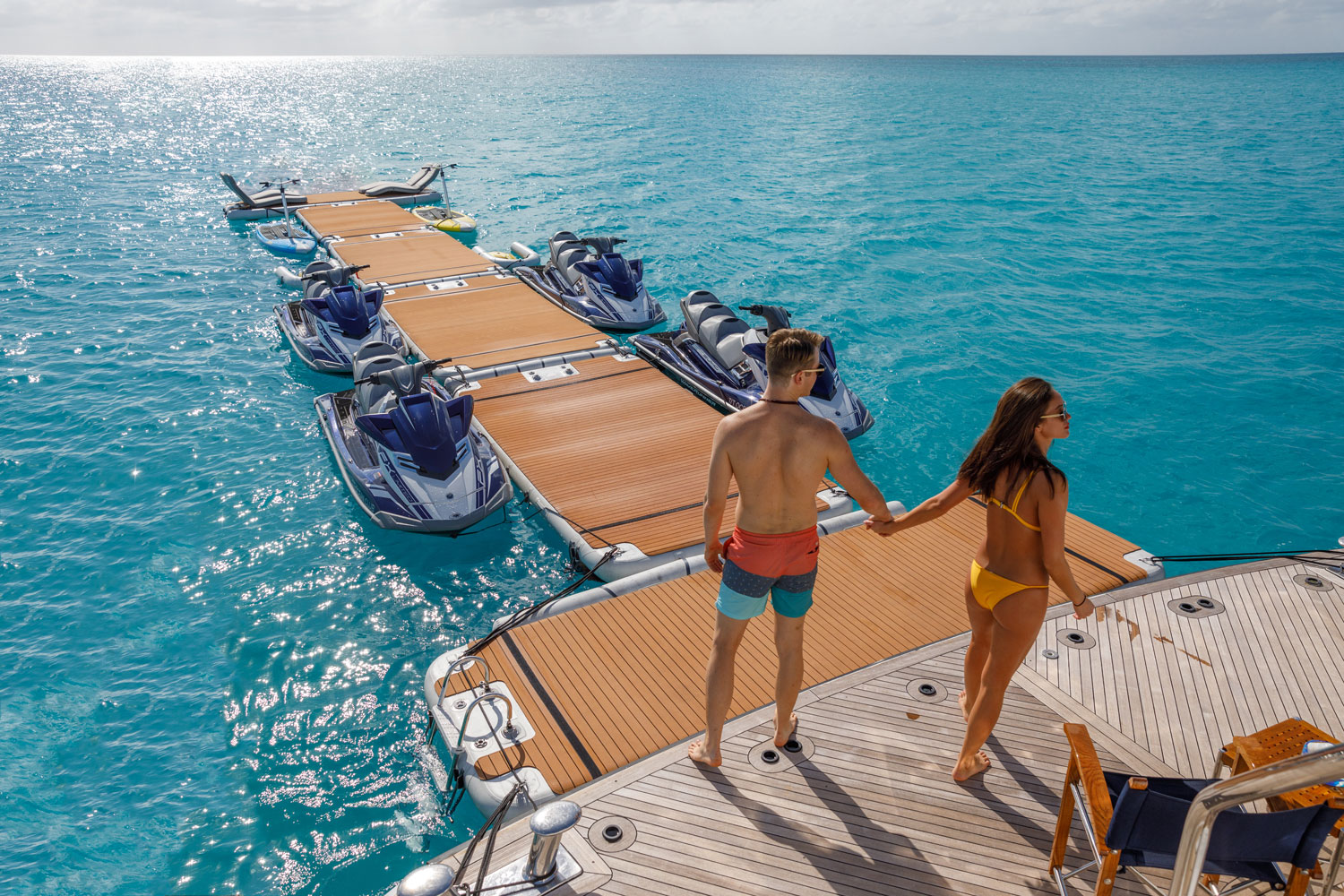 Met deze nieuwe en innovatieve jachtplatformen creëert u uw hulpmiddel bij uw boot of installeert u elegant een drijvend werkterrein in de zee of meer. Dit hoogwaardige product imponeert met zijn elegantie en verfijnde design