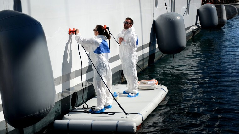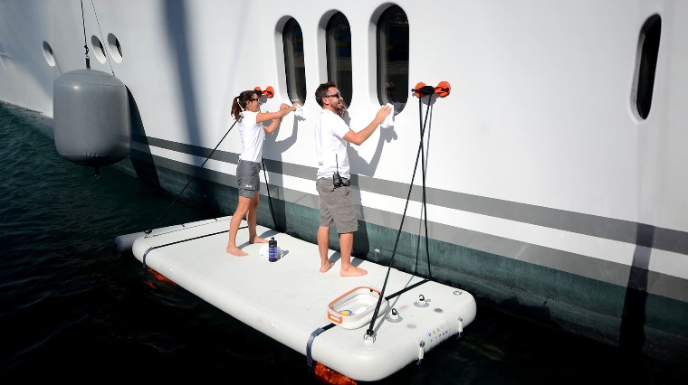 Eindeloze mogelijkheden veilige en eenvoudige verbindingen voor het gemakkelijk schoonmaken, vernissen, schilderen, polijsten en de romp van het jacht er smetteloos uit laten zien voordat ze de haven verlaten.